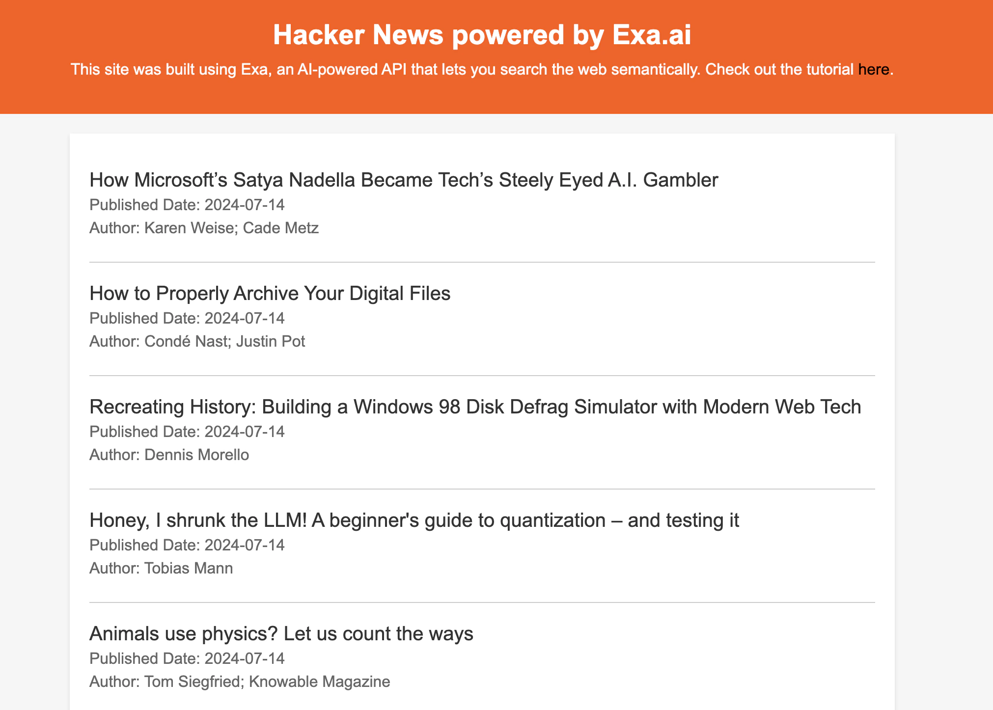 In the index.js file (should be open by default), scroll to line 19. This is the brains of the site. It’s where we call the Exa API with a custom prompt to get back Hacker News-style content.- this gadget saves me so much time: